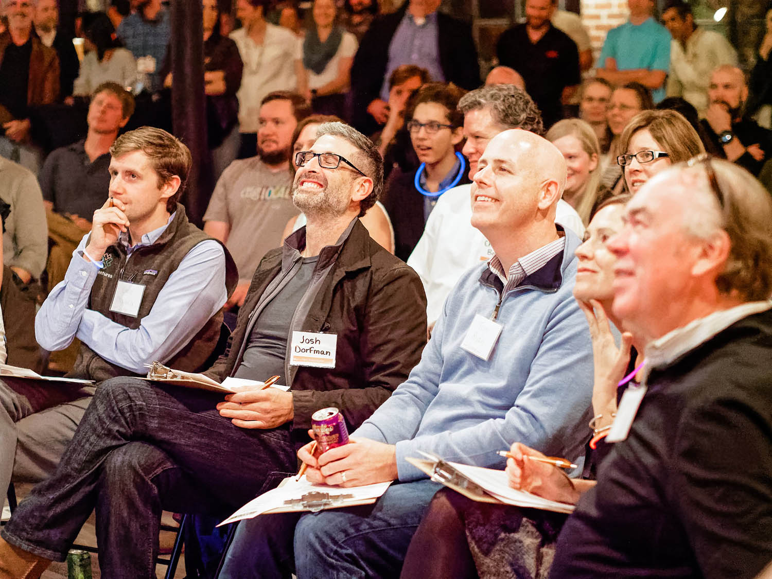 Audience members listen to pitches, ask questions about business concepts, and give participants helpful feedback.